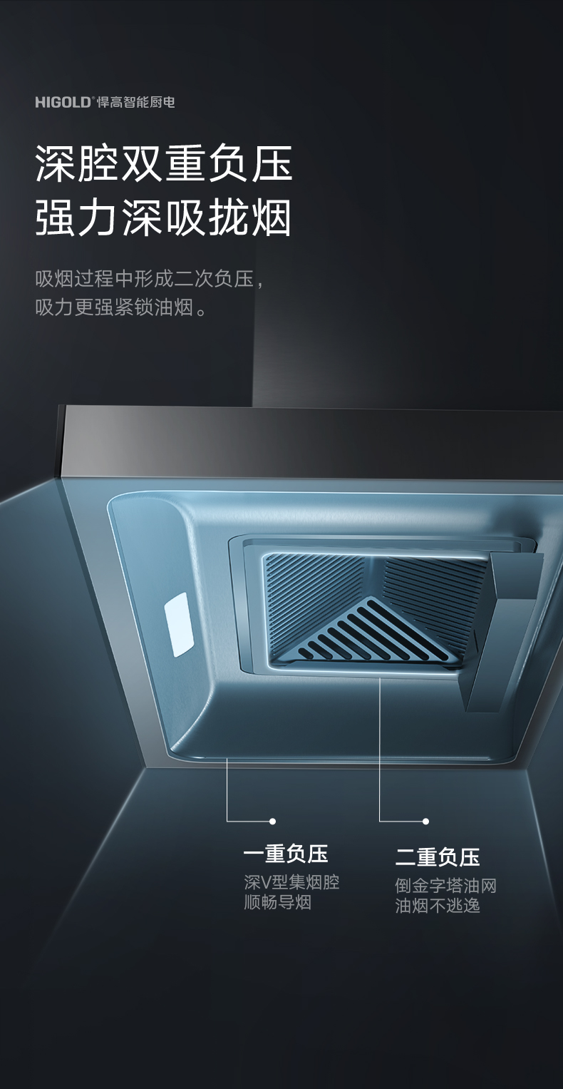 ▪ 深腔双重负压,强力深吸拢烟