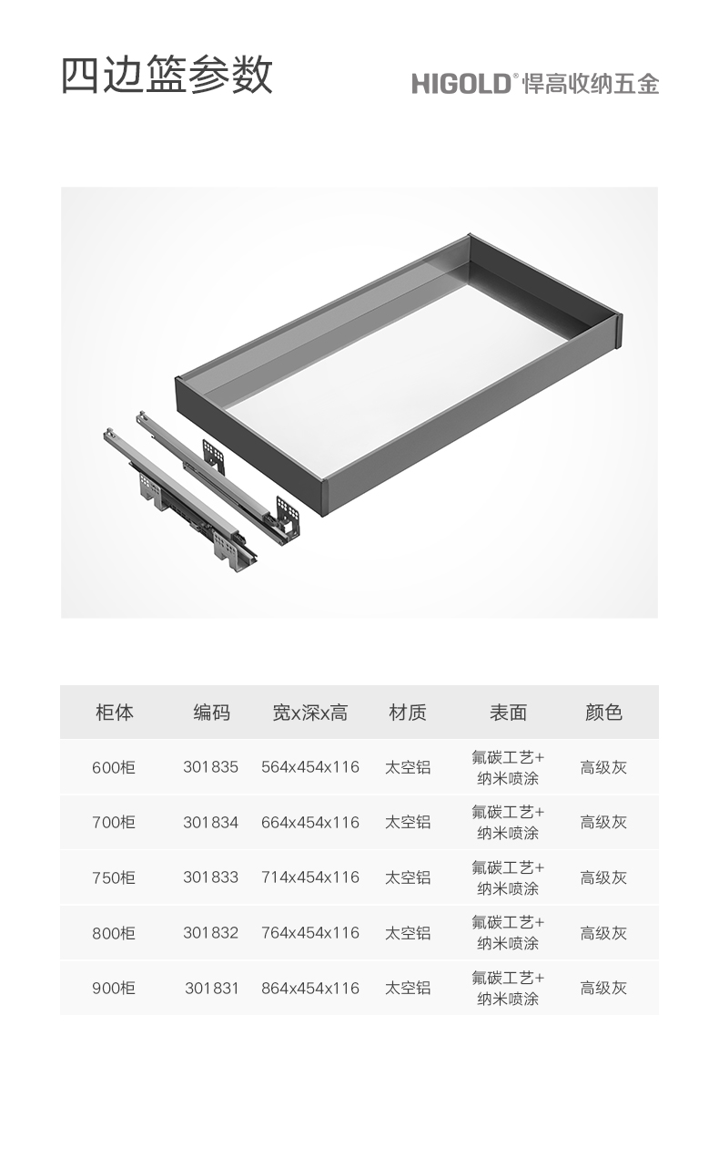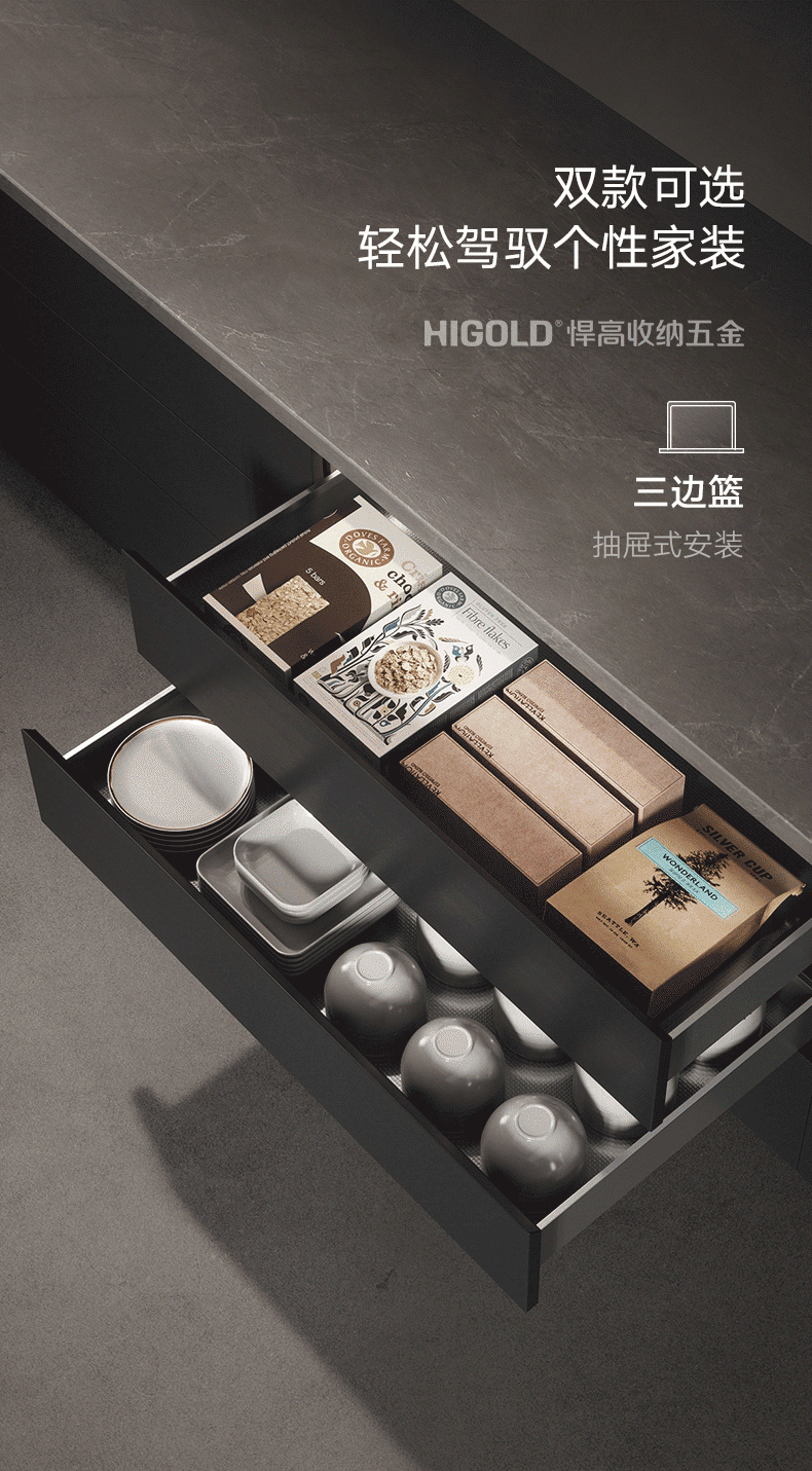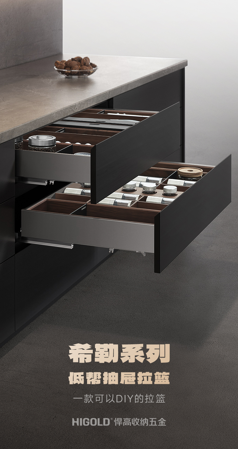 低帮抽屉拉篮-厨房收纳五金系列产品-希勒系列-厨房功能五金