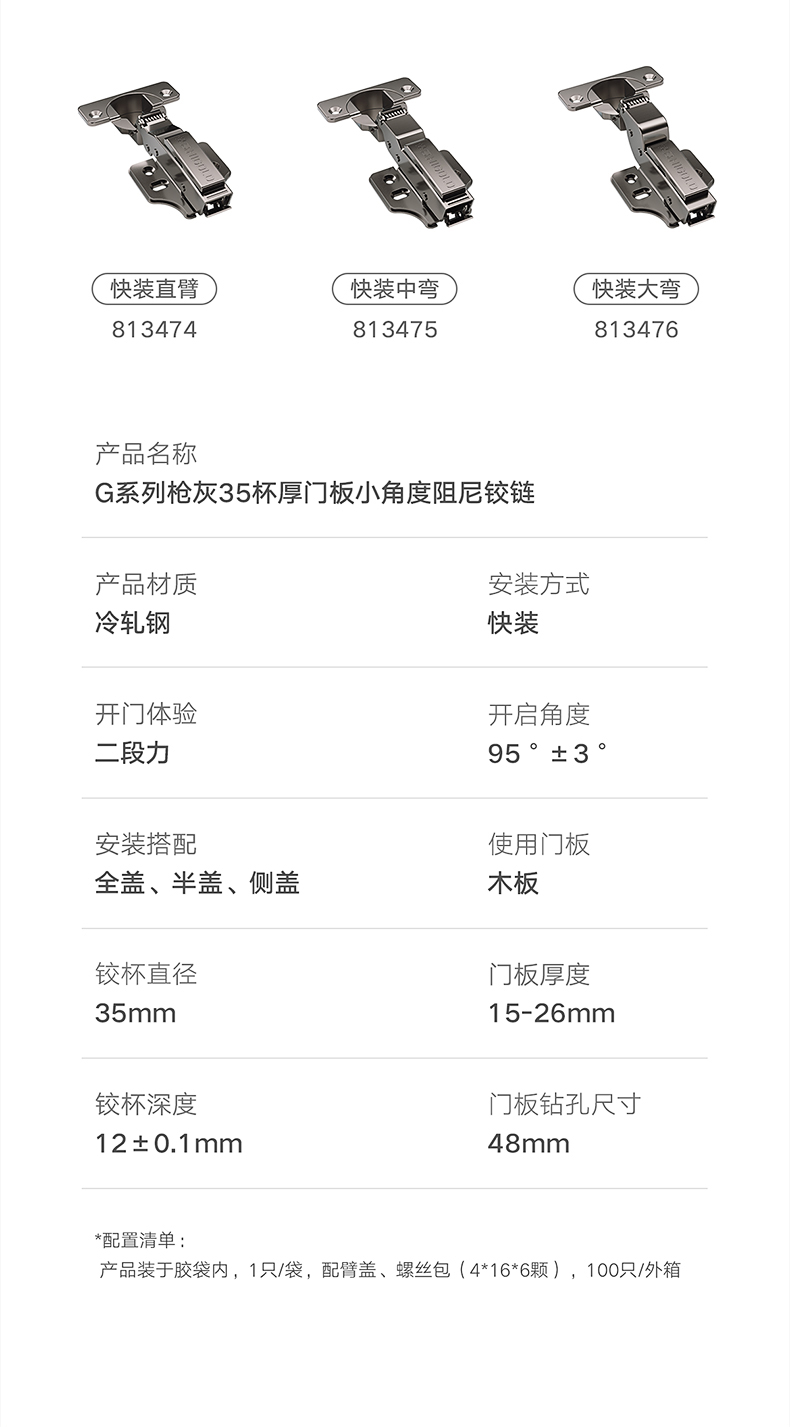 G系列枪灰35杯小角度阻尼铰链