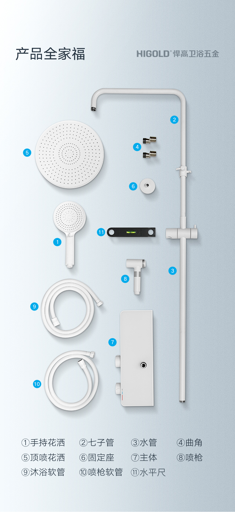 悍高T.LY系列四功能置物淋浴套装