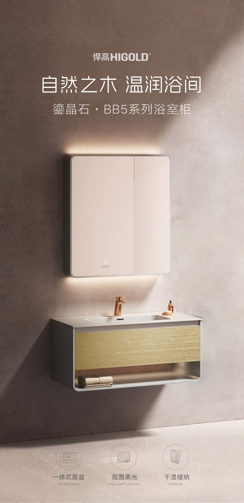 悍高BB5系列原木色鎏晶石浴室柜